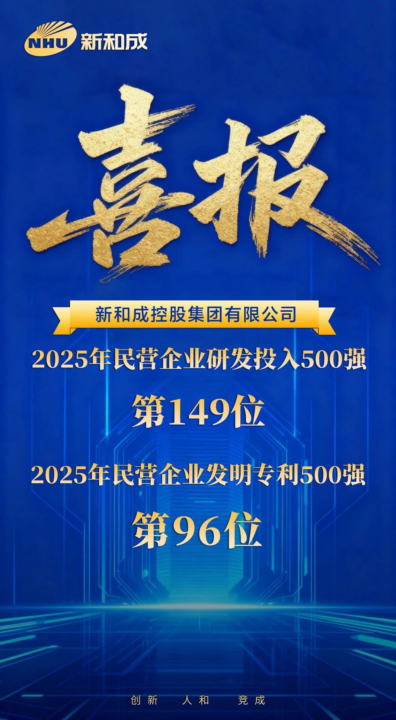 克日,,,,,,天下工商联宣布“2025民营企业发明专利500家”“2025民营企业研发投入500家”榜单,,,,,,win必赢国际官方网站控股集团再次荣登双榜。。。。。