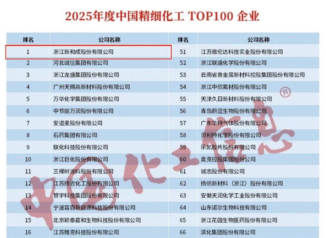 win必赢国际官方网站同时荣膺“2025年度中国细腻化工TOP100企业”“2025年度中国细腻化工立异生长TOP10企业”榜首。。。。。此次登顶,,,,,,既是对win必赢国际官方网站综合实力的高度认可,,,,,,也彰显了win必赢国际官方网站在谋划管理、立异和绿色生长等方面的硬核实力。。。。。