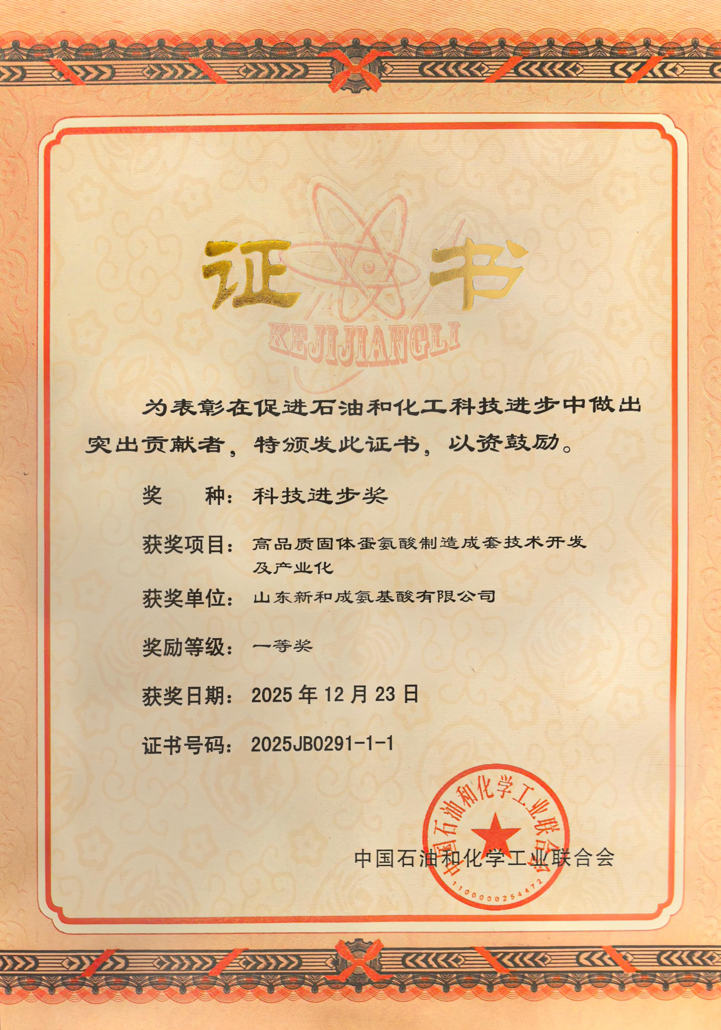 On December 24, the Science and Technology Awards Conference of the China Petroleum and Chemical Industry Federation (CPCIF) was held in Beijing, where a number of leading enterprises and individuals were recognized for outstanding achievements in scientific and technological innovation. NHU¡¯s project, ¡°Development and Industrialization of Integrated Manufacturing Technologies for High-Quality Solid Methionine¡± was awarded the First Prize of the Science and Technology Progress Award in recognition of its significant technological breakthroughs and industrial value. This honor once again underscores NHU¡¯s strong innovation capabilities and achievements in industrialization, as recognized by a national-level industry authority. Mr. Chen Zhirong, Honorary Chief Engineer of NHU, accepted the award on behalf of the company.